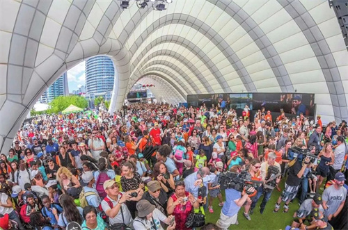 HPA建筑事務所聯合另外2家設計工程公司,建造和安裝兩個大型充氣涼亭,覆蓋1,000平方米和300平方米的活動場地。在工廠里只用了十個星期的時間來設計和制造,只花了2天時間就在現場安裝完成。