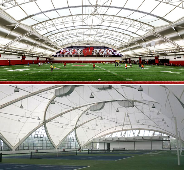 體育場館跨度大,屋頂結構在整個建筑設計中占重要地位,對建筑造型起決定性的作用。膜結構作為新型建筑,與傳統結構相比,優勢非常明顯,大家熟悉和深刻的為“2008年北京奧運會的國家體育場(鳥巢)、國家大劇院、國家游泳中心(水立方)”。