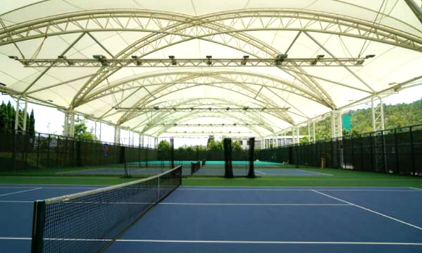 ⑦自潔性。膜材的表面涂層、特別是其中的聚四氟乙烯(PTFE)涂層,具有良好的非粘著性,大氣中的灰塵及臟物不易附著與滲透,而且其表面的灰塵被雨水沖刷干凈,常年使用后仍能保持外觀的潔凈及室內的美觀。
