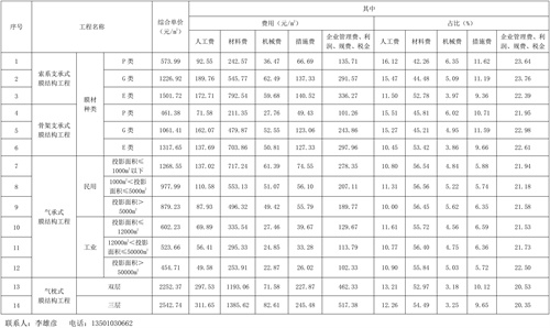 四、關于材料價格,本指標中G類、P類膜材及其他材料均考慮為國產合格產品,而E類膜材則按進口合格產品考慮。
