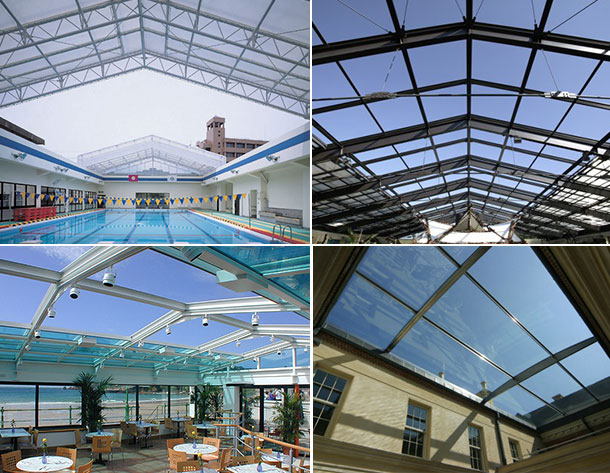 ●應用場所:商業中庭、星級酒店、會所、游泳池和高檔別墅屋頂、樓梯口、下沉式庭院、采光井、陽光房等。